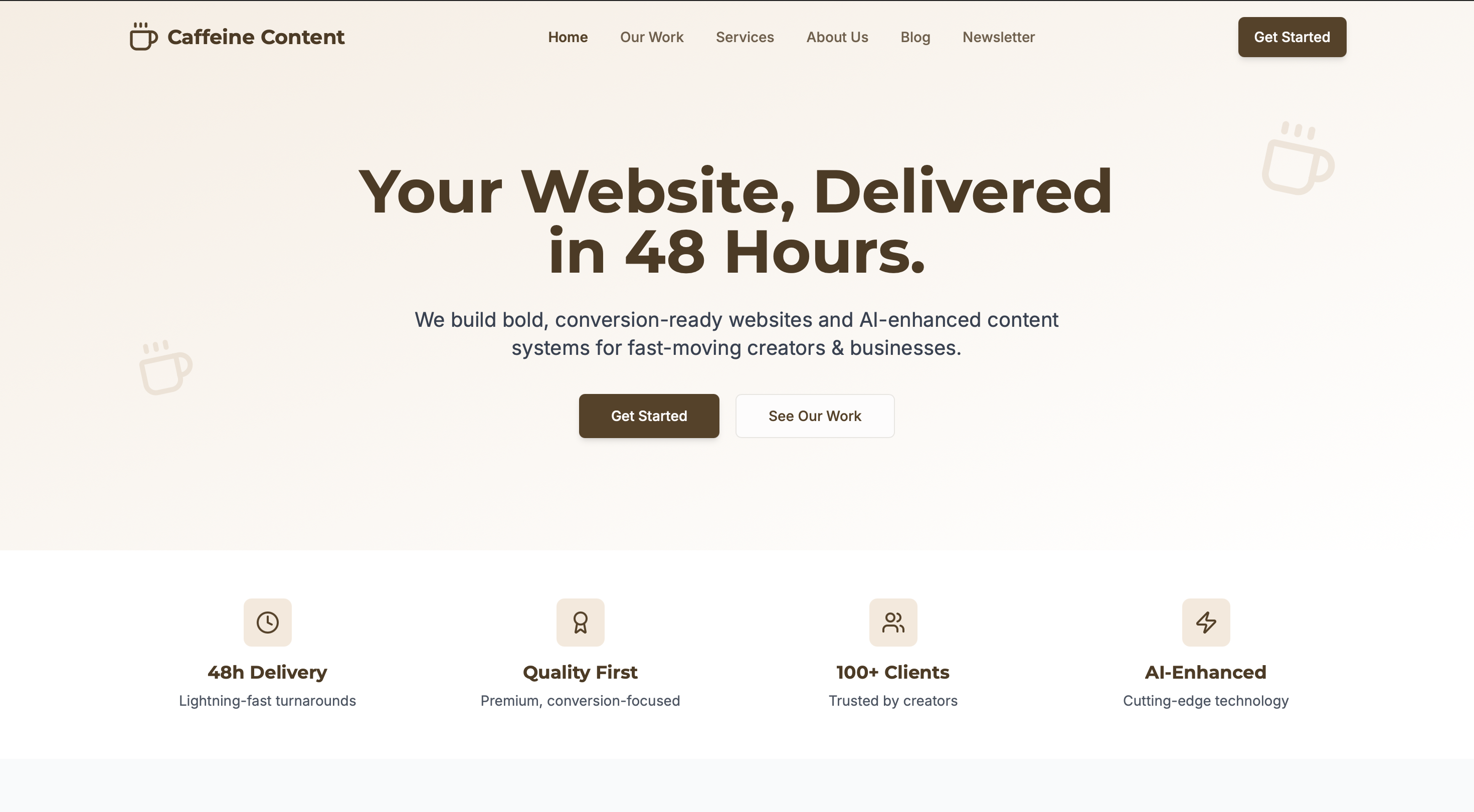 - Hero + story sections
